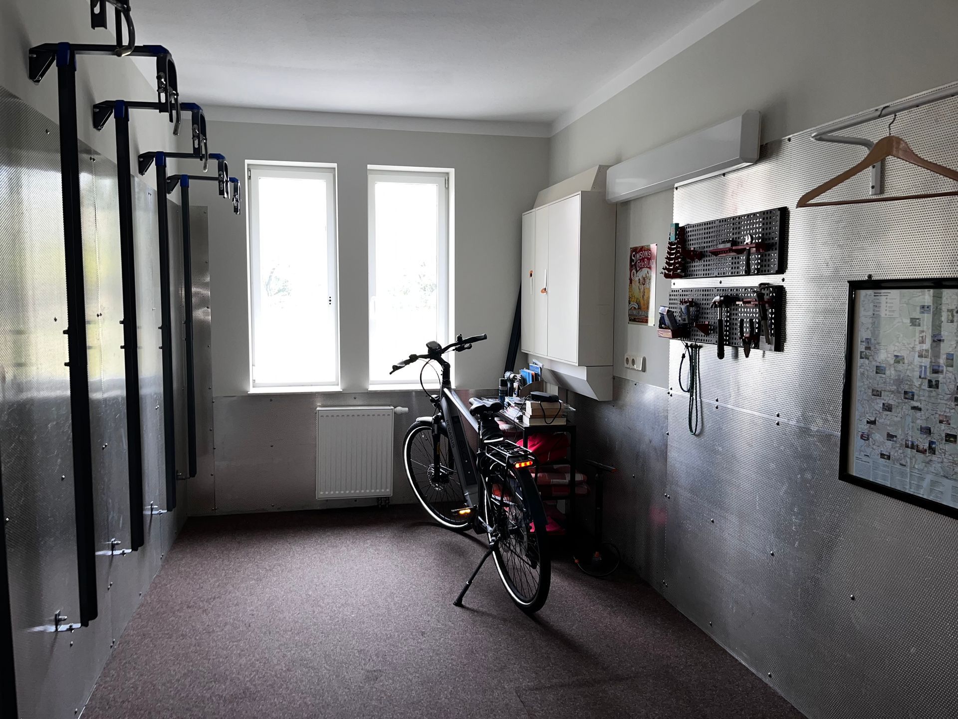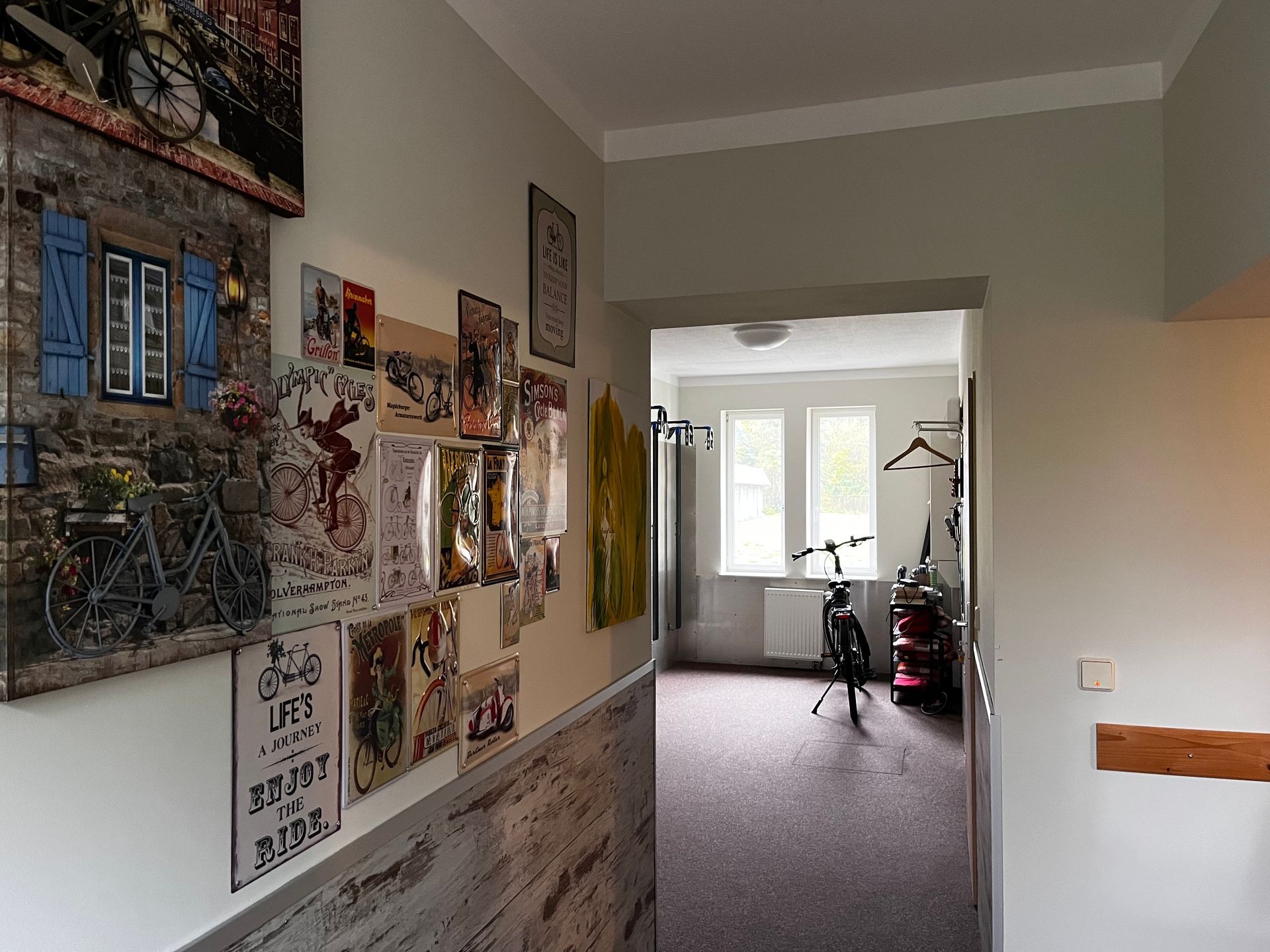 Bei uns erwarten Sie vier gemütliche Gästezimmer mit einem bequemen Duschbad, eine voll ausgestattete Gemeinschaftsküche zum Frühstücken oder Kochen, eine Sitzecke in unserem wunderschönen Garten sowie einen sicheren Aufbewahrungsort für Ihre Fahrräder mit Werkstatt.